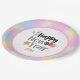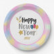 Ring in the new year with New Year's Eve decorations and custom party supplies. Save time and money with these custom 9' paper plates and using same custom design on other party supplies that can be easily done in customisation design panel here online. Customisation is always free. Pink, Blue Yellow Clouds New Year Party Supplies Paper Plates. Happy New Year Holidays Party Supplies, Colourful Paper Plate .