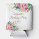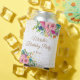 Elegant pink, blue, and yellow watercolor floral on white birthday party can cooler, personalised with the name of the guest of honour and her party date. Contact us for help with customisation or to request matching products.
