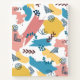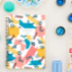 Modern and fun notebook with a whimsically drawn pattern of shapes and figures in blue, pink, yellow, and white. Personalise with your own text on the cover, like your name or the purpose of the notebook.