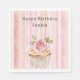 Pink Blush Cream Stripes Rose Cupcake Birthday Napkin