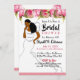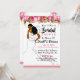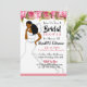 This elegant pink blush floral bridal shower invitation features an African American bride wearing a contemporary white fitted gown. Send out an invitation that is cute and classy.