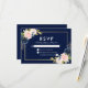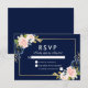 Pink Blush Floral Wedding RSVP Blue Gold Card