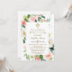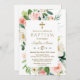 Pink Blush Flowers Bloom Gold Cross Baptism Invitation