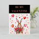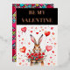 Modern blush pink foil Valentine's Day Card picturing a cute hare with hearts and roses.