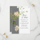 Wedding save the date card depicts an elegant botanical garden design with simple blush pink flowers, greenery and a modern grey and white style. The back features inspirational introduction, "Two lives united in friendship, Two friends united in love, One love united in Christ."