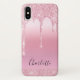 Pink Blush glitter drips name Monogram Case-Mate iPhone Case