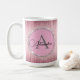 A sleek metallic sheen with a pink blush gradient pattern is a backdrop to a pink glittery sphere where you can personalised it to make it uniquely your own. Glam chic vibes.