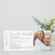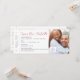 Rose gold pink aeroplane logo on a fun boarding pass save the date card for a travel theme or destination wedding, with room for a photo and lots of room for travel and accommodations details. The authentic retro plane ticket details include little arrows, bar code, and box for a seating assignment in a vintage computer font complete the look. Destination weddings require sending guests all the accommodation information earlier than a local wedding. If you want to simply get the word out while you work out the travel and excursion plans, the design on the back can be deleted, just click 'customise further.'