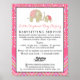 Pink Boho Elephant, Babysitter, Daycare, Nursery Advertising Poster By The Business Card Store.