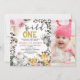 Photo Pink Boho Floral Safari Wild One 1st Birthday Invitation