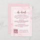 This beautiful wedding enclosure card is designed to give you extra space for whatever information your guests may need, including registry, reception, travel, accommodations, etc. as well as a customisable QR code directing your guests to your website for more information. The card features a pretty boho chic floral design with peony flowers and leaves in shades of cotton candy blush pink. The title is written in elegant script calligraphy and reads "the details."