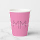 Pink Bold Monogram Modern Minimalist Name Initials Paper Cups