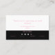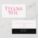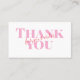 The front features a striking oversized pink "THANK YOU for your order" typography over a clean white background — girly, trendy, and eye-catching. The back delivers your appreciation message in soft pink alongside a dedicated "find us online" social bar — Instagram, Facebook, Pinterest, Website, and Twitter — all in a sleek black footer.