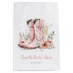 Our Boots & Bubbly gift bag features pink cowboy boots, clinking champagne glasses, and floral accents—perfect for rustic, boho, western, or farmhouse bridal showers. Fully customisable to match your celebration style!