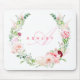 Pink Botanical Rose & Peony Wreath Name Monogram Mouse Mat