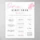 It looks like you've uploaded an image showing a "My First Year" milestone board for a child, decorated with a pink bow and various details about their growth, personality, and achievements. Let me know how you'd like to use or modify this—whether you need help creating something similar, updating the content, or any other request!