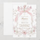 pink bow and flowers frame Baptism girl Invitation