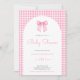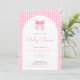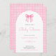 Celebrate the upcoming arrival of your little one with our Watercolor Pink Bow and Gingham Baby Shower Invitation, a perfect blend of elegance and modern charm. This beautifully designed invitation features a delicate watercolor bow complemented by a sophisticated script that embodies a simple, elegant, and classic aesthetic. Feminine touches and coquette elements make it ideal for a stylish baby shower. The invitation showcases pretty pink gingham on the front and a white arch framing all your important details, adding a delightful contrast to the soft hues. Available as prints and/or a digital download, it's easy to personalise and buy online, ensuring your celebration is as special as the occasion itself.