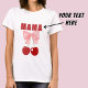 Embrace the playful coquette style with this Pink Bow and Red Cherry design. Pair it with your favourite jeans for a laid-back yet stylish look and make every day a little more enchanting! This style draws on retro imagery with modern flair. Text: "MAMA". Follow the prompts if you wish to customise the text to say "Mum", "Nonna", "Nana" or any other name (5-6 letters maximum).