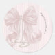 Pink Bow and Stripes Baby Shower Classic Round Sticker