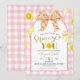 Pink Bow and Yellow Lemon Baby Shower Invitation, Can't Wait To Squeeze You Baby Shower Invite, Editable Pink Plaid Baby Shower