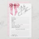 Pink Bow baby girl predictions and advice card