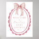 Welcome guests to your shower with this beautiful sign, featuring a scalloped frame with a pink bow. Add the guest of honour's name, shower date and custom welcome text using the fields provided.