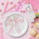 Pink Bow Baby in Bloom Sakura Baby shower Paper Plate