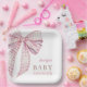 Pink Bow Baby Shower Girl Watercolor Paper Plate