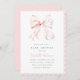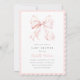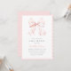 Sweet baby shower invitation that features an elegant pink bow. Choose the scallopped edges for a whimsical finish.