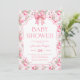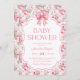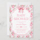 Pink Bow Baby Shower Invitation. Beautiful, soft, feminine roses pattern with coquette pink bow design. Lovely baby shower invitation for the mum-to-be. Vintage and girly girl vibes perfect for a girl baby shower.