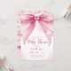 Celebrate the sweet little girl on the way with this adorable Pink Bow Baby Shower Invitation. Featuring a coquette ribbon design and soft pink accents, it’s perfect for a feminine and elegant baby shower. Fully customisable for your special event! BBS1029