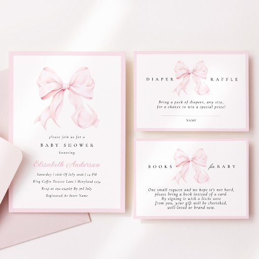 Minimal Pink Bow Baby Shower 2026Designed by Adrienn Maier