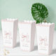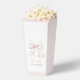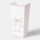 Cute pink bow baby shower favour boxes for popcorn or candy with scallopped edges.