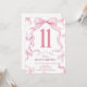 Pink Bow Birthday Invite, Girls 11th Birthday Invi Invitation