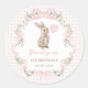 Pink Bow Bunny Balloon Girl Birthday Party Classic Round Sticker