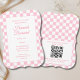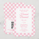 This trendy coquette aesthetic design with a pink bow chequered pattern offers customisation with the new mum's name, party information, and registry QR code.