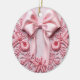 Add a touch of elegance and charm to your holiday decor with our whimsical Personalised Pink Bow Ceramic Christmas Ornament. This round ornament features a delightful pink aesthetic, showcasing a beautifully crafted pink girly bow with intricate faux embroidery work. The 3D design gives it a lifelike appearance, adding depth and sophistication to your Christmas tree. The front side boasts the stunning bow design, while the back is a soft pastel pink, perfect for adding a personalised touch. You can customise it with a name, date, or a special message, making it a unique and heartfelt addition to your holiday decorations or a thoughtful gift for loved ones.
