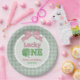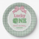 Pink Bow Clover Lucky One Girl 1st Birthday Paper Plate