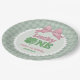 Eat your lucky charm's 1st birthday cake on these paper plates printed with a pretty cottagecore lucky charm design, with sage green gingham, a pretty pink bow, and a four leaf clover. Add your daughter's name in a pink script!