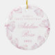 Capture a precious memory with this charming ceramic ornament, perfect for celebrating a baby's special milestones. Featuring an elegant soft pink bow illustration, this keepsake ornament adds a touch of whimsy and warmth to any holiday decor. Ideal for 'Baby's First Christmas' or as a thoughtful gift for new parents, this ornament is made of high-quality ceramic that will last for years to come.