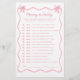 Add charm to your coquette baby shower theme with this personalised pink bow baby shower game. Perfect for unique baby shower game ideas, this 'Guess Who' game brings a fun twist to your celebration. Featuring an adorable pink bow design, it complements any bow baby shower or pink bow baby shower theme. This engaging activity is ideal for pink baby shower ideas and makes a memorable addition to any bow party, creating lasting memories for all your guests.