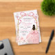 Pink Bow Coquette Butterfly Quinceañera Acrylic Invitation, Blush Pink Floral Dress Quinceañera Invitation, Blush Pink Mis Quince Anos XV Invitaciones de Acrilico