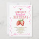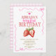 Pink Bow Coquette Gingham Berry First Birthday Invitation