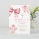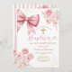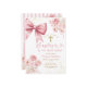 Pink Bow Coquette Girl Baptism and Birthday Floral Invitation