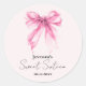 Pink Bow Coquette Script Sweet 16 Party Blush Classic Round Sticker