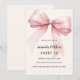 A soft beige, cream coloured background, decorated with a pink large bow. Personalise and add a name and party details.