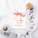 A soft beige, cream coloured background, decorated with a pink large bow. Personalise and add a name and party details. The name and the event are written with real rose gold foil.
