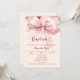 A soft cream, peach colored background, decorated with a pink large bow and, a golden cross and pink flowers. Personalize and add a name and details details.