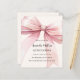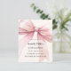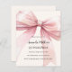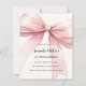 A soft beige, cream coloured background, decorated with a large pink bow. Personalise and add a name and party details.